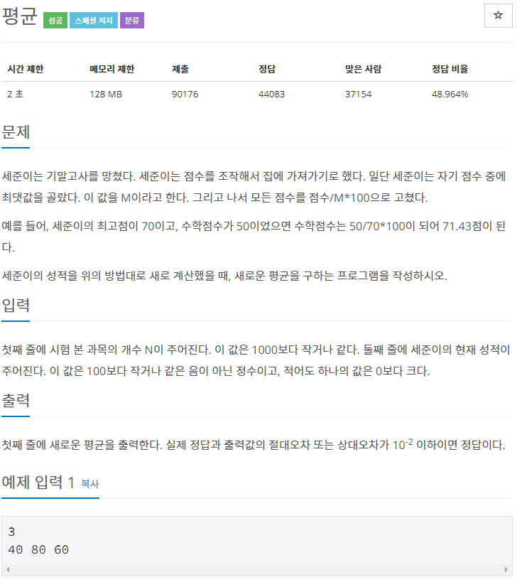 새로운 평균의 합 = (점수 / 최대값 * 100)