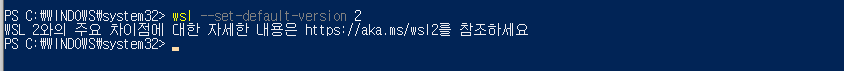 해당 리눅스의 WSL2 버전으로 변경하려면 해당 커맨드를 입력하고 조금 기다리면 된다