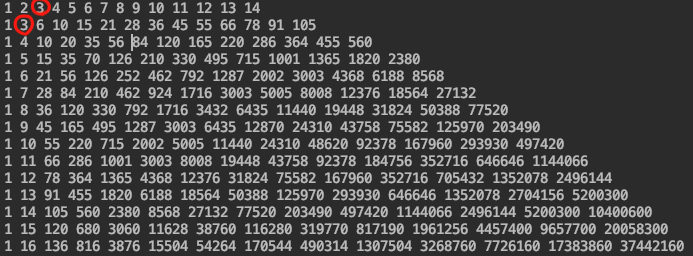 apt[i][j] = apt[i - 1][j] + apt[i][j - 1];