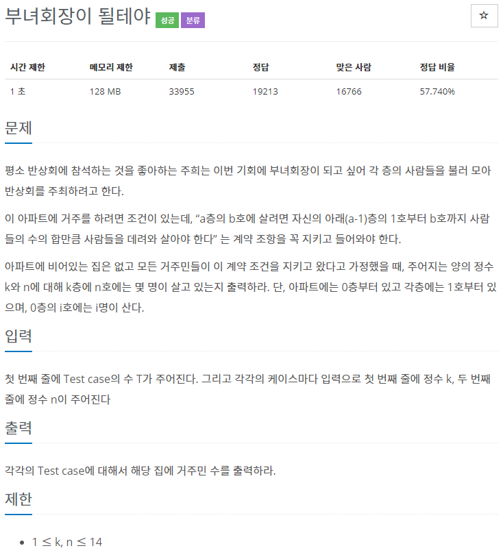 0~14층 1 ~ 14호의 모든 값을 계산해서 찾아내는 것으로 해결을 하였다