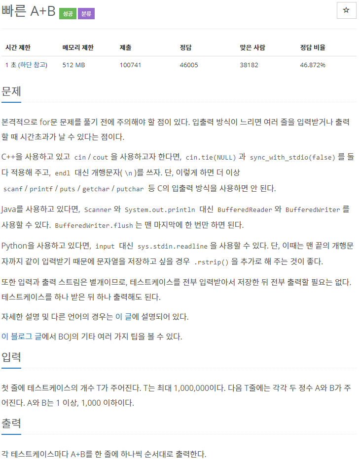 시간제한이 있어서 주로 사용하던 Scanner와 출력하는 방식으로는 시간 초과가 돼버려서