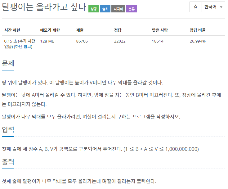 마지막 날짜에서 정상에 도달하는 조건 때문에 while로 처리해야 하나?라는 생각도 했었다 (시간제한이 0.15 초라 while문으로는 통과하기 힘들 것이다)