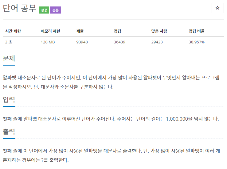 //가장 많이 사용된 알파벳 찾기