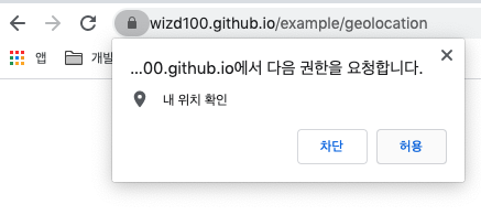 권한을 허용해야만 위도, 경도 값을 가져올 수 있습니다.