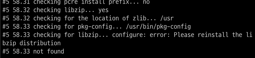 도커로 php 작업 중 zip 모듈이 필요해서 설치하려고 하는데 다음 에러가 발생.